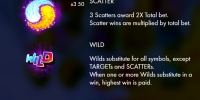 - Wild (разноцветная надпись) действует лишь в качестве джокера. Он заменяет другие картинки, кроме скаттеров, в цепочках, но сам не приносит выплат.