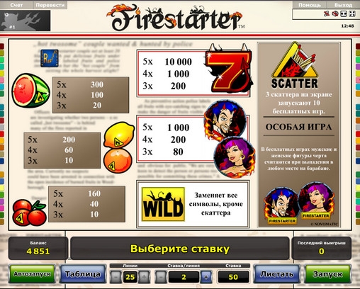Скачивать игровой автомат Firestarter вам не придется, потому что он работает во флэш-режиме.