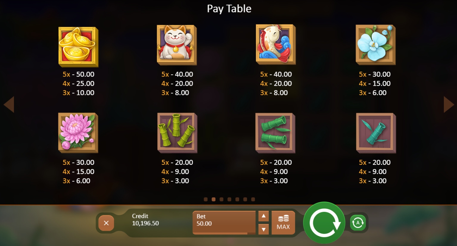 Выплаты рассчитываются по коэффициентам от х3 до х50. Они умножаются на стоимость условных монет. По ходу раунда выигрыши суммируются, а затем сразу выводятся на основной счет.