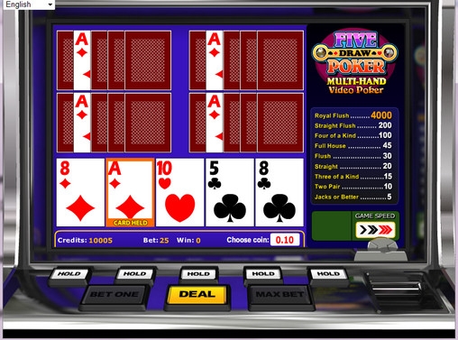Five Draw Poker – бесплатный видео-покер онлайн. В нем используется стандартная колода в пятьдесят два листа без джокеров, которые перемешиваются перед каждой раздаче.