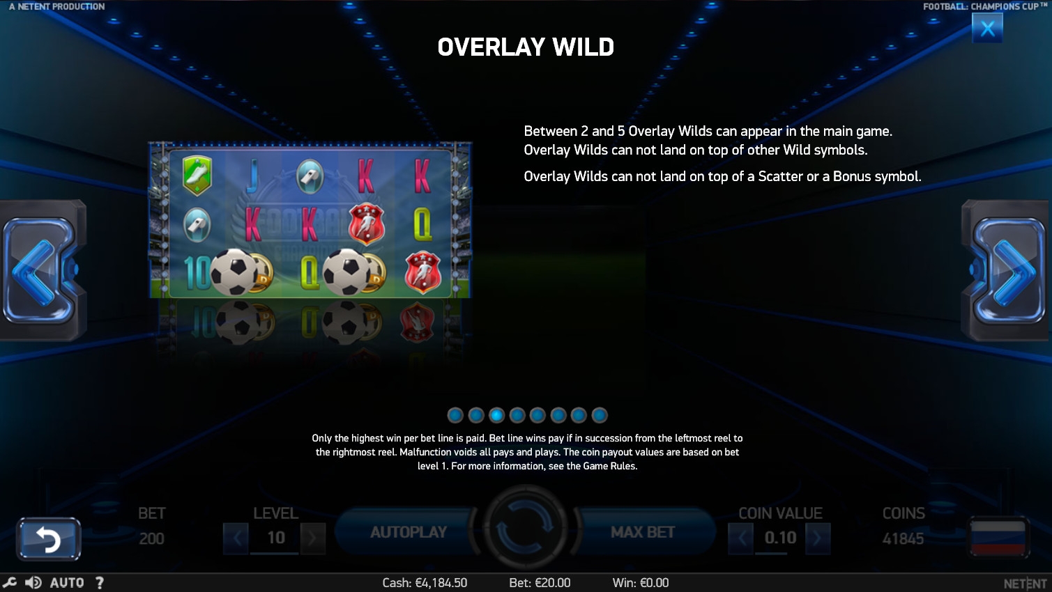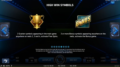 Прогрессивные джекпоты NetEnt в Football: Champions Cup не разыгрываются.