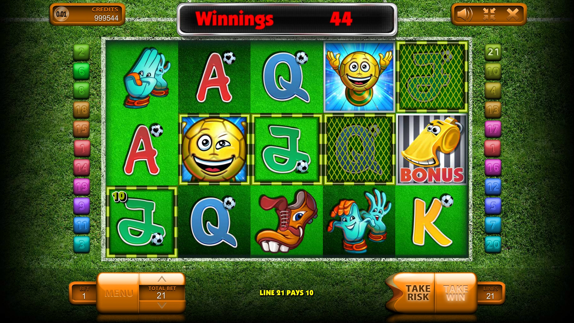 Не плохой слот с веселой, не принужденным интерфейсом и как раз в тему футбола, что позволит остаться этому слоту популярным еще на долго. С бонусами и джек-потом здесь сложно. Довольно сложно выиграть.