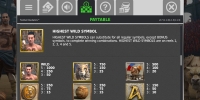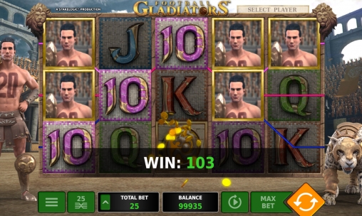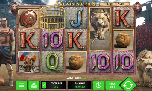 На барабанах автомата появляются вышеупомянутые футболисты в образах гладиаторов. Их сопровождают защищенные доспехами хищники из семейства кошачьих: лев, тигр и так далее. Кроме того, на экране можно увидеть старый кожаный мяч, шлем, щит и номиналы карт от десятки до туза.