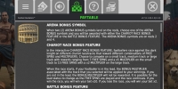 - Chariot Race («Гонка на колесницах») – Футболисты попытаются опередить Темного Рыцаря в гонке. Призами становятся разные виды фри-спинов с дополнительными множителями. В любом случае, участнику полагается какое-то вознаграждение.