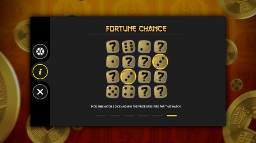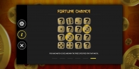 - Fortune Chance – Шестнадцать закрытых кубиков выпадают на дополнительном экране. Их нужно открывать в произвольном порядке. Когда вы найдете два одинаковых значения, вам достанется приз. Он рассчитывается по общей ставке и коэффициенту, соответствующему данным костям.