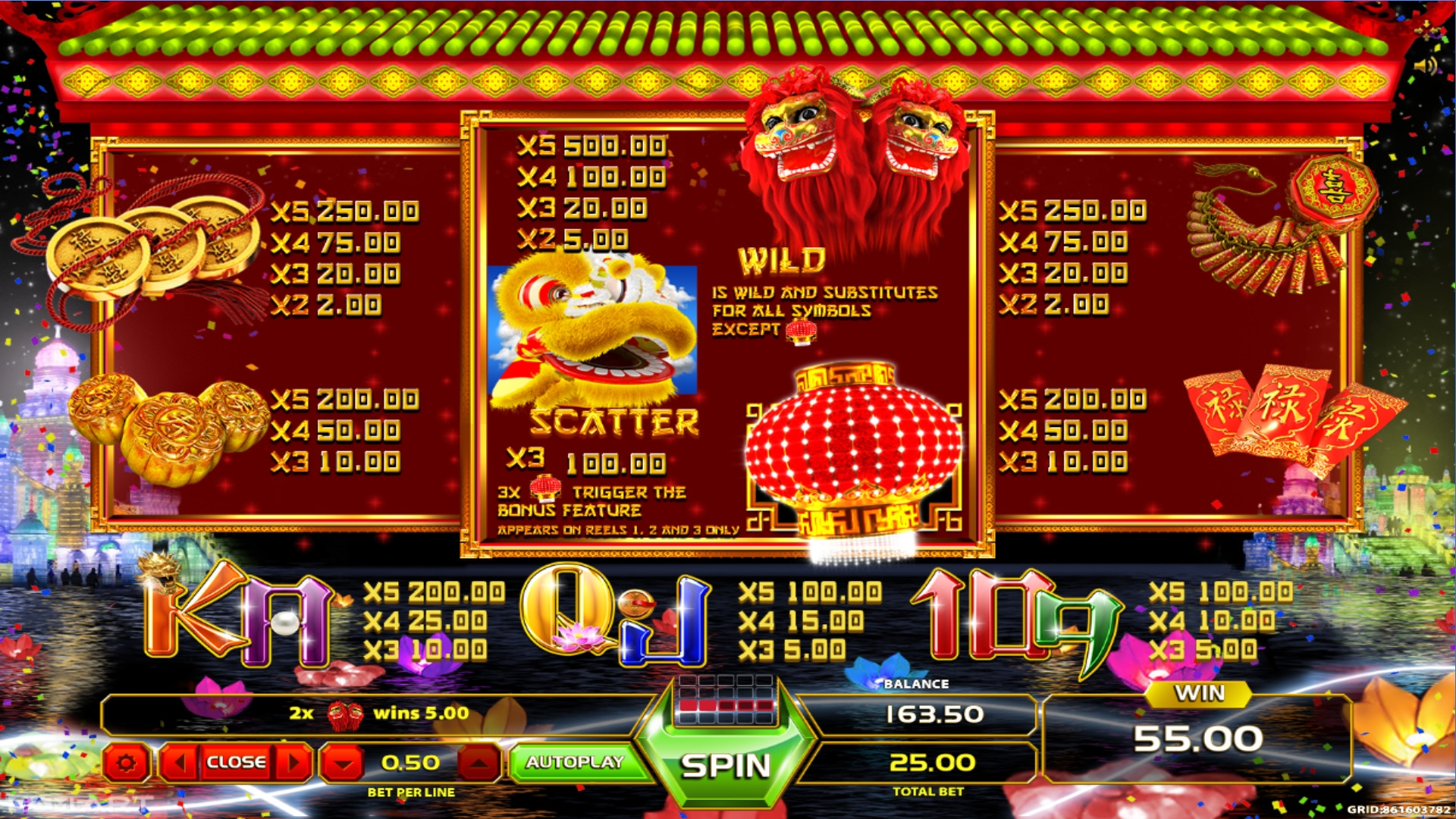 Очень крсочно и ярко исполнен этой игровой автомат, прямо как будто оказался в центре како го китайского праздника.Мне понравилось достачное количество специальных символов и выигрышных комбинаций.