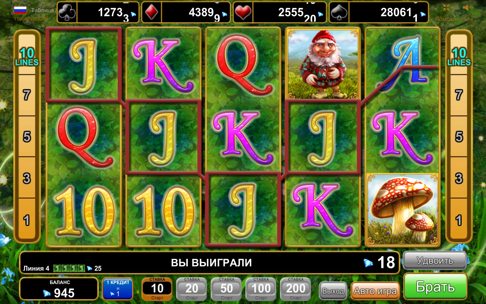 Думаем, вы сами разберетесь, как менять количество линий и выбирать размер ставки по каждой из них.