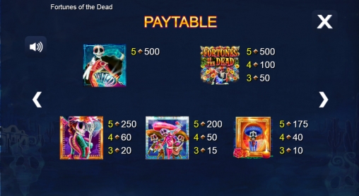 Коэффициенты расчета выплат по комбинациям варьируются от х5 до х500. Они умножаются на ставку по одной полосе. Об исключениях рассказывается ниже в обзоре Fortunes of the Dead.