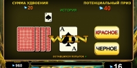 Все выигранные деньги можно сразу вывести на сет или поставить на кон в игре на удвоение, выдержанной в классическом стиле. Вы будете угадывать цвет карты. При удачном исходе выплата будет увеличиваться вдвое. При ошибке вы лишитесь ставки. Максимальный лимит определяется ставкой, по которой вы играли в последнем спине.