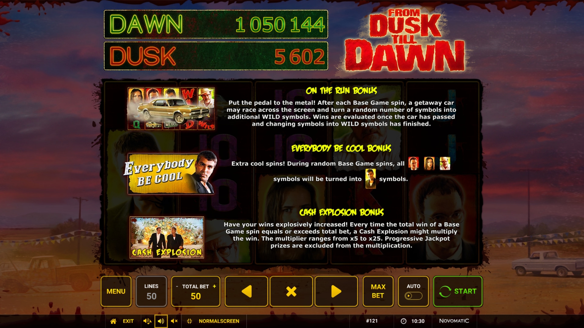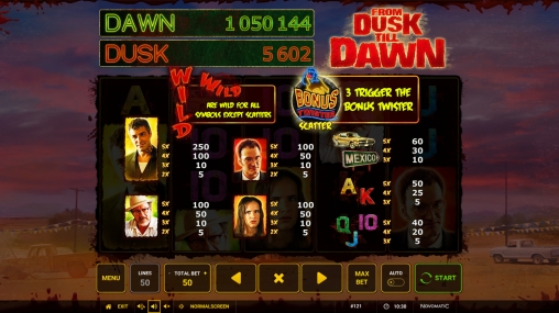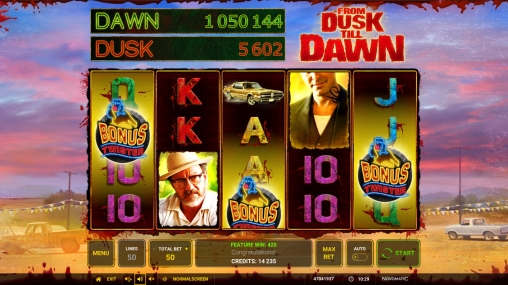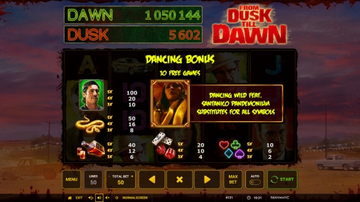 Компания Novomatic посвятила знаменитому боевику-ужастику красочный игровой аппарат From Dusk till Dawn, о котором рассказывается далее в обзорной статье Casinoz.