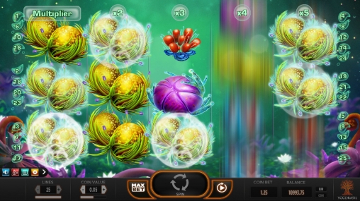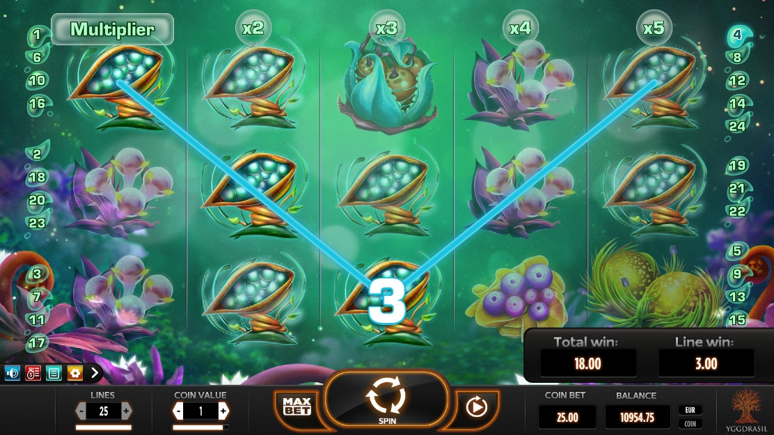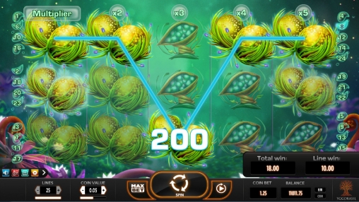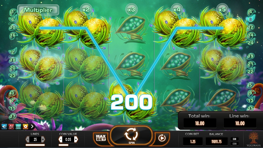 Мне автомат понравился своей необычной графикой, Интерфейс не русифицирован но интуитивно понятен.В слоте нет ни бесплатных спинов в обычном виде, ни тематических бонусных игр, ни накопительного джекпота, ни даже специальных символов,но очень захватывает благодаря часто образующимся комбинациям и дополнительным множителям.