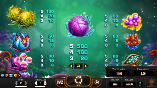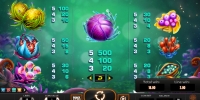В видео-слоте используется семь обычных картинок, образующих комбинации по общим правилам. Это те самые фантастические создания фрутоиды, которым посвящен игровой автомат. Специальных символов нет. Раундов бесплатных спинов (кроме тех, что были описаны выше) тоже нет.