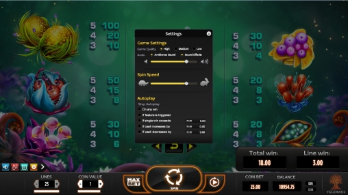 В параметрах можно настроить скорость вращения барабанов, качество графики, звуковое сопровождение и режим автоматической игры.