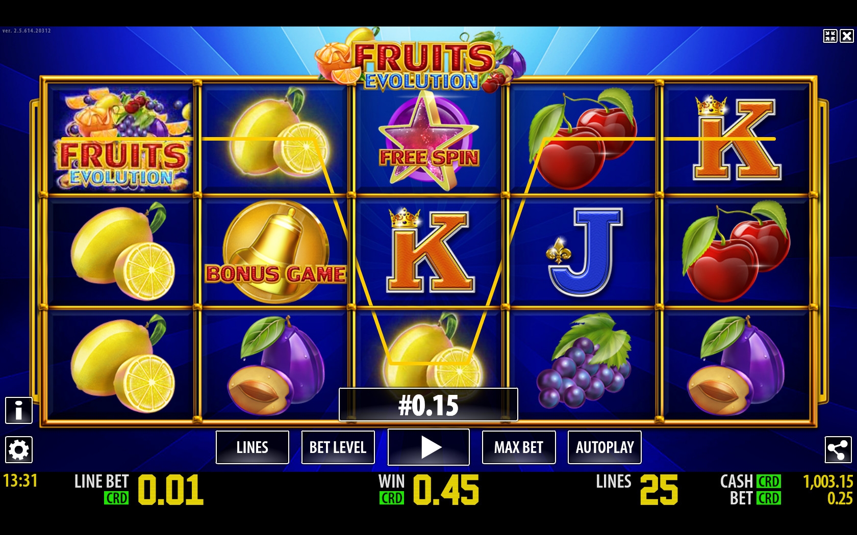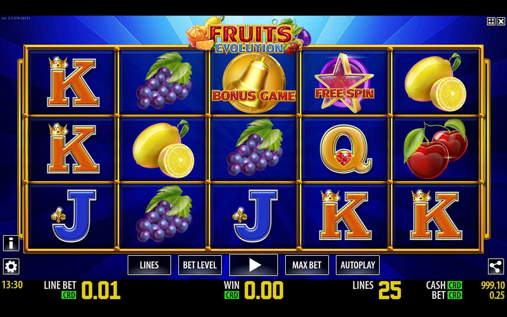 яркий, сочный и очень интересный игровой автомат, понравился. По структуре Эволюция фруктов - пять барабанов, пятнадцать картинок на основном экране и двадцать пять линий. Достаточно простые и особые символов, бесплатные символы с удвоенной функцией и бонусная игра.