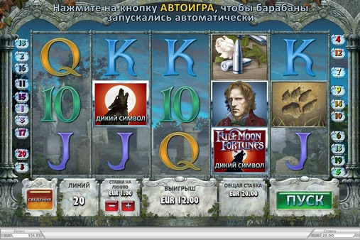 Full Moon Fortunes – пятибарабанный видео-слот с расположением картинок на экране в три ряда. Играть на игровом автомате разрешается только по двадцати линиям. В Unibet Casino на линию принимается ставка от одного цента до двадцати пяти евро, а на спин можно ставить до пятисот евро.
