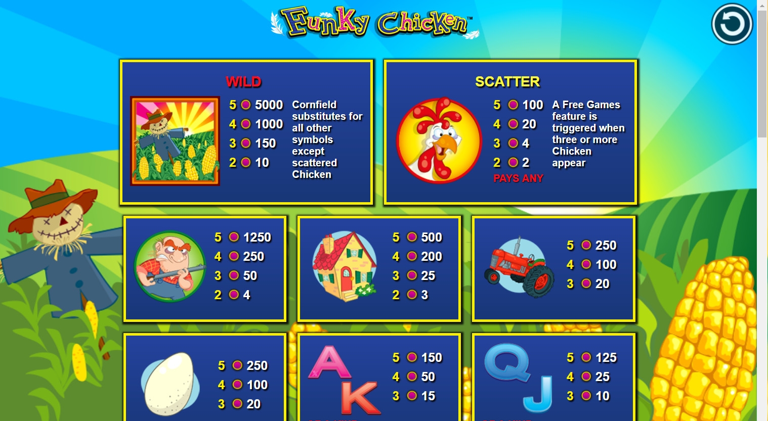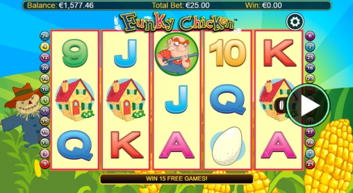 Funky Chicken – игровой автомат с пятью барабанами и тремя рядами иконок на главном экране.