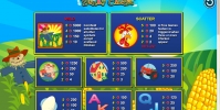 - Wild (пугало на кукурузном поле) выпадает во всех пяти столбцах и может самостоятельно формировать выигрышные цепочки. Также он заменяет в последовательностях другие иконки, кроме скаттеров.