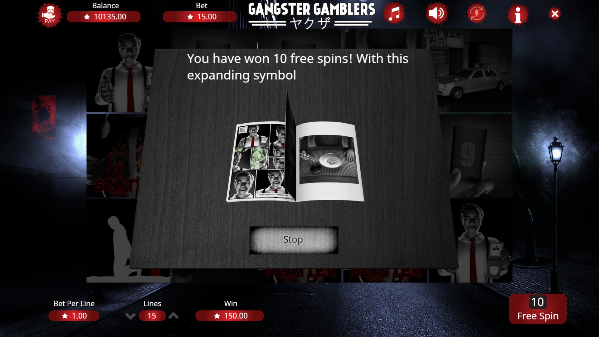Так как игры по равным шансам в Gangster Gamblers нет, кредиты сразу выводятся на основной счет. Ниже рассматриваются особые символы и бонусы.