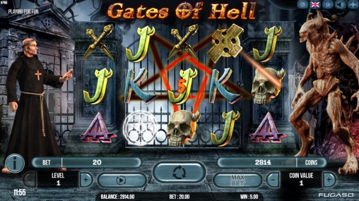 Специалисты из компании Fugaso выпустили мистический игровой аппарат «Врата ада». Его главным героем стал католический священник. Он не побоялся вступить в схватку с ужасным демоном, вырвавшимся из преисподней. Оба персонажа не покидают экрана, располагаясь по обе стороны барабанов. В определенных ситуациях они наносят друг другу удары, в результате которых игроки получают бонусные выплаты. Обо всех возможностях модели рассказывается в обзоре Casinoz.