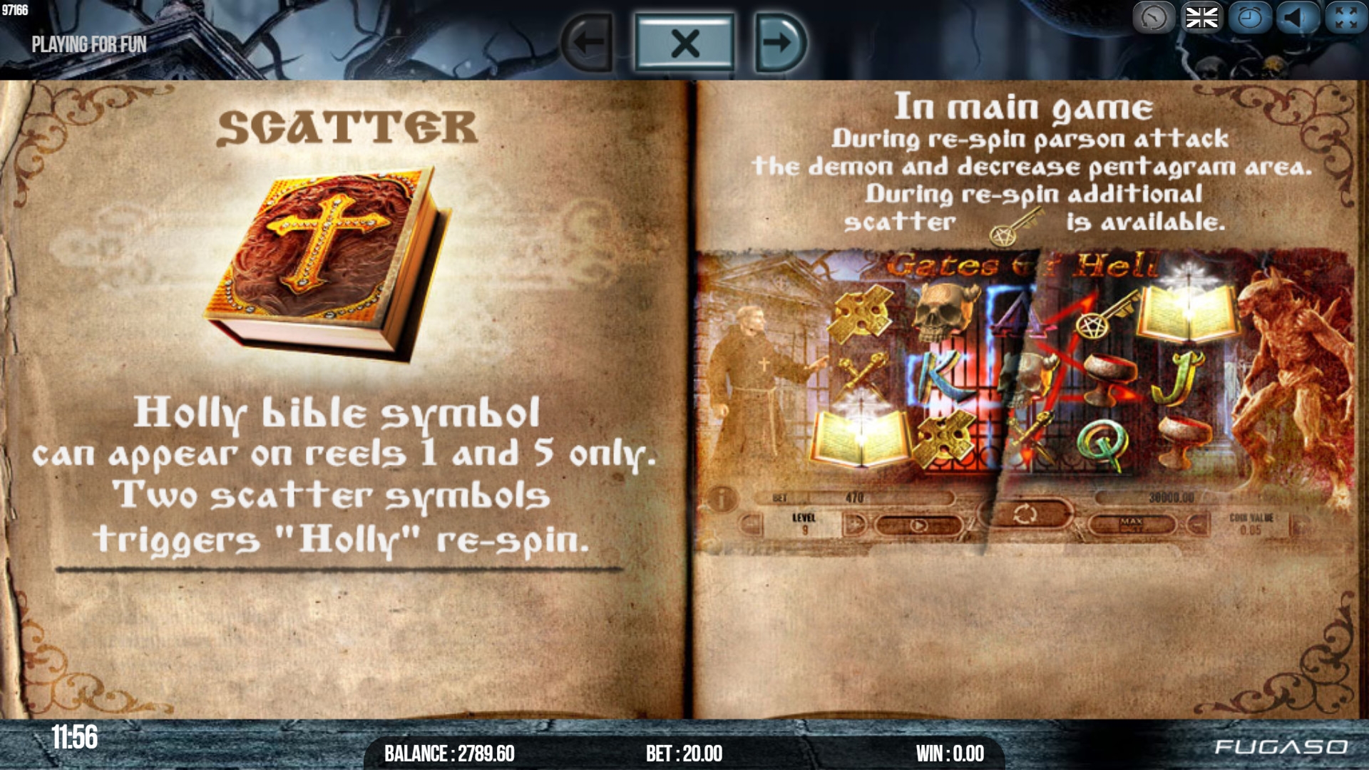 - Holly re-spin – Начинается бесплатный респин, в котором священник атакует демона и уменьшает размер пентаграммы. Во время респина на барабаны добавляются дополнительные скаттеры в виде ключа.
