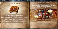 - Scatter (Библия) изображен на первом и пятом барабанах. Два таких символа начинают Holly re-spin.