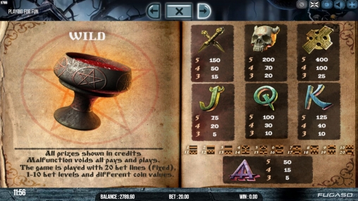 - Wild (чаша с кровью) – это джокер. Он не формирует комбинации, но заменяет простые картинки, помогая составлять из них выигрышные цепочки.