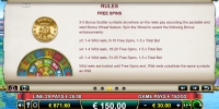 - Scatter (монета) оплачивается, выпадая в любых ячейках. Выигрыши рассчитываются по общей ставке. От трех скаттеров запускают бонусный раунд.