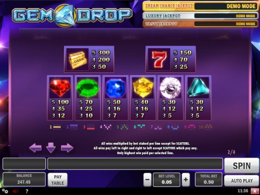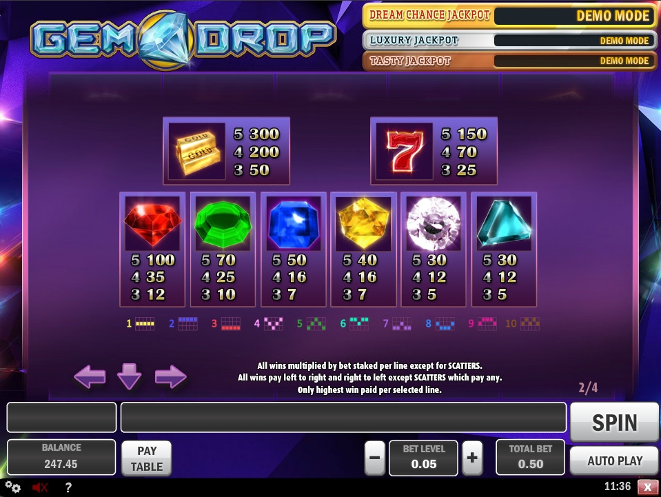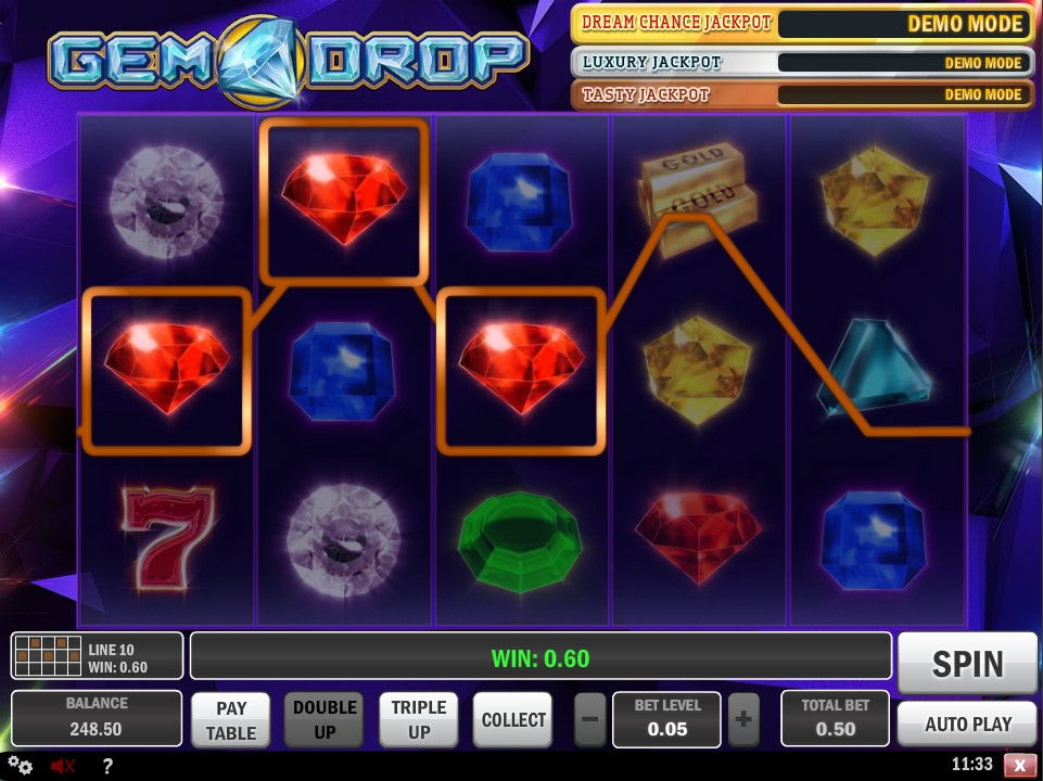 В DHoze можно протестировать игру бесплатно и даже без регистрации. Если вы захотите делать ставки деньгами, нужно будет открыть счет. Также Gem Drop предлагается в других интернет-казино с софтом Play’N GO.