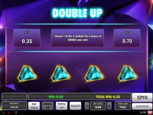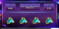 В данном раунде вам нужно будет выбрать одну из двух разновидностей: Double Up или Triple Up. В первой на экране появится четыре кристалла. Два из них выигрышные. Если вам удастся найти один из них, выплата увеличится вдвое. Во второй версии кристаллов три. Только один из них выигрышный. Если вы его найдете, сумма утроится. При ошибке вы лишитесь ставки.