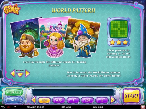 Также следует добавить, что в этой модели есть несколько миров. Каждый из них выдержан в оригинальном стиле и обладает уникальными особенностями. Переход в другой мир происходит при выполнении определенных условий на текущем уровне. В частности, необходимо в процессе игры задействовать все выделенные позиции на экране. Они отмечаются, если на них оказывается картинка, участвующая в оплачиваемой комбинации. Заполнить весь шаблон нужно в течение одной игровой сессии. При переходе в новый мир начисляется бонус.