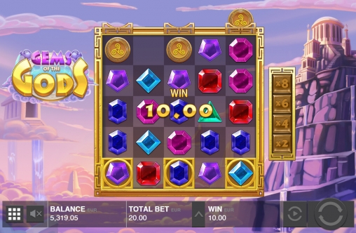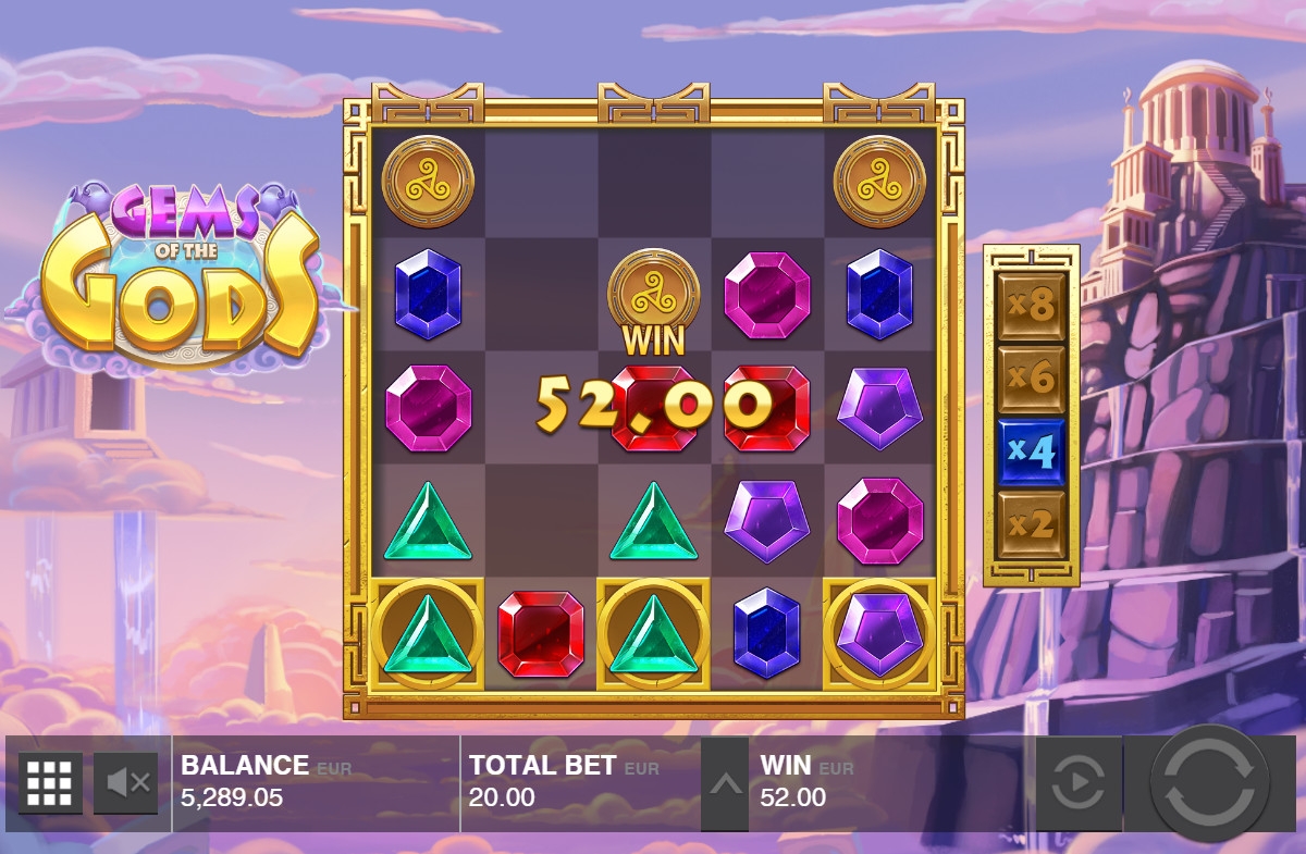 В Gems of the Gods есть базовые картинки, символы с особыми функциями, дополнительные множители, фри-спины и бонусные опции.