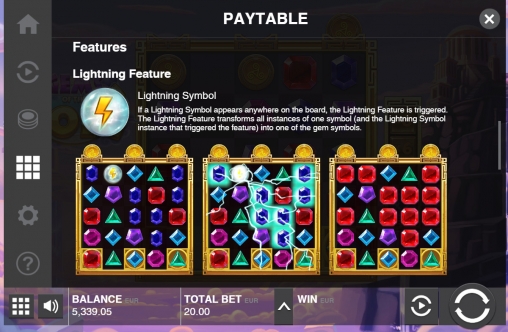 - Lightning (сфера с молнией) - Появляясь в любой ячейке, он запускает бонус. Увидеть его можно лишь во втором и четвертом столбцах.