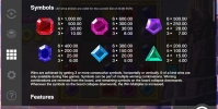 Раунд начинается с того, что на экране появляются тридцать драгоценных камней разных цветов и форм. Если хотя бы три одинаковых элемента выстраиваются рядом друг с другом по горизонтали или по вертикали, по ним начисляется выплата. Ее размер зависит от ставки и коэффициента из таблицы, предусмотренного для каждой из возможных комбинаций.