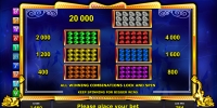«Драгоценный джекпот» - это 5-барабанный слот с десятью постоянно активными линиями (их схема есть в таблице коэффициентов), на каждую из которых принимается от четырех кредитов до одной тысячи. Следовательно, вы можете играть на игровом автомате, поставив на спин от сорока кредитов до десяти тысяч.