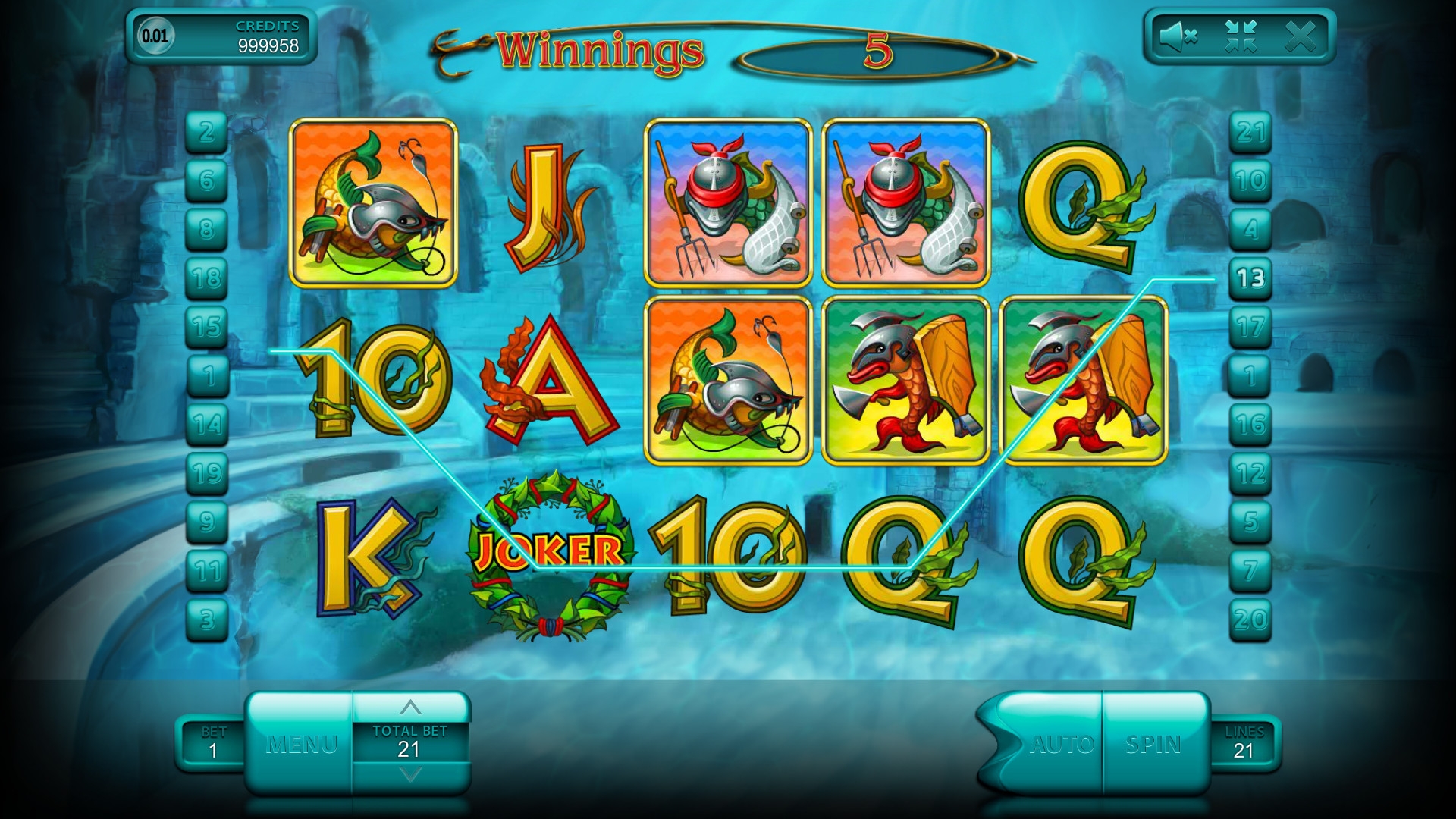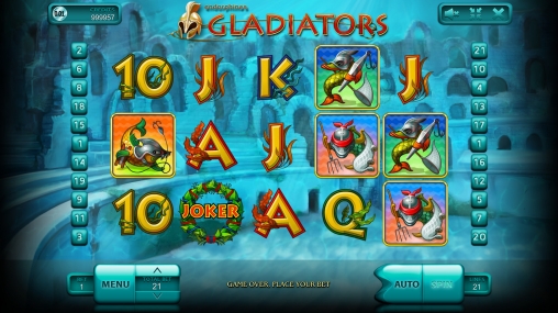 В Gladiators пять барабанов и двадцать одна линия для формирования комбинаций. Картинок на экране одновременно бывает пятнадцать.