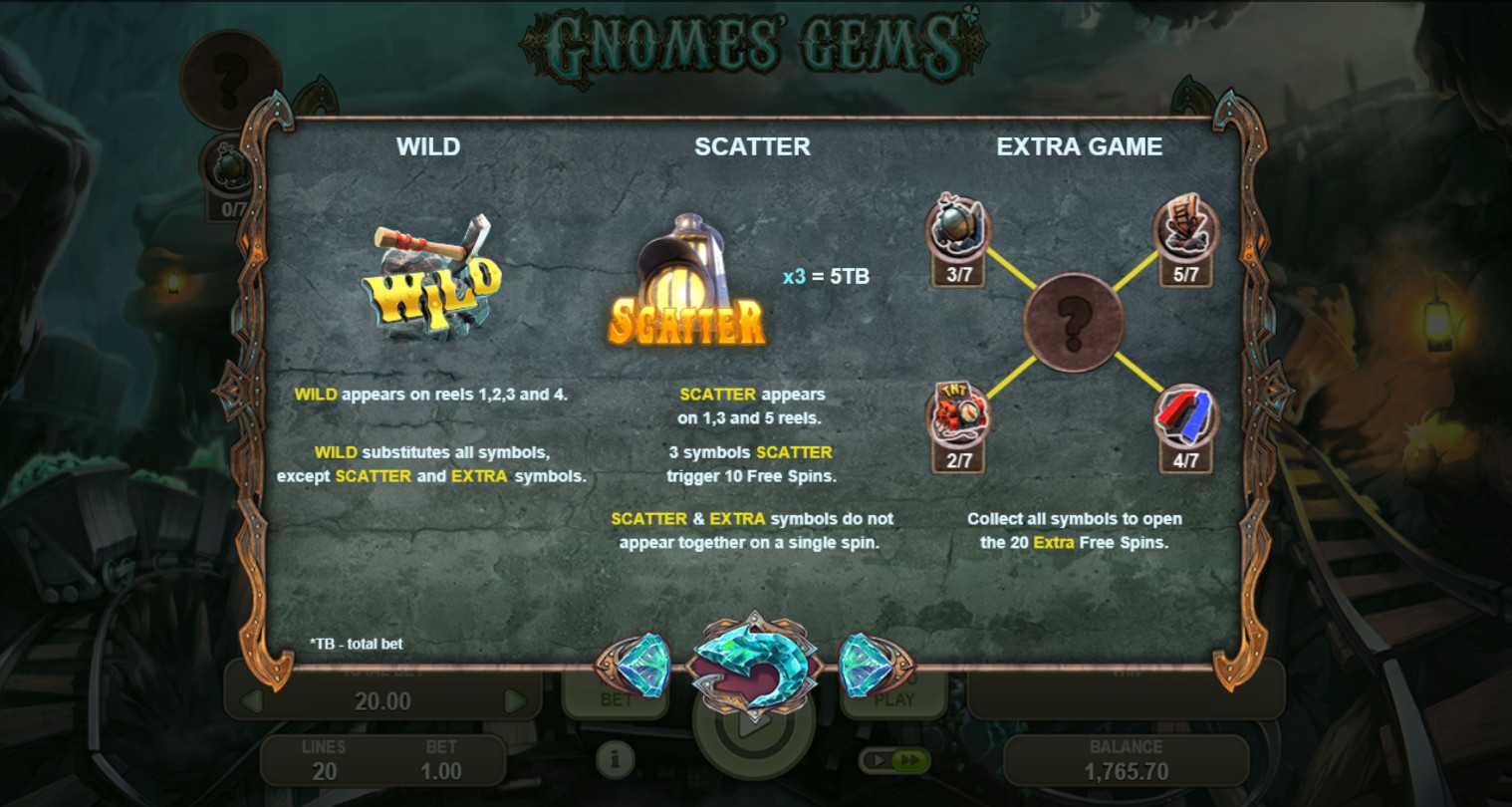 Исключения из стандартных правил и бонусы рассматриваются далее в обзоре Gnomes’ Gems от энциклопедии азарта Casinoz.