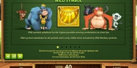 Специальный символ в Go Bananas всего один – Wild. Но он представлен сразу в пяти разновидностях: горилла, орангутанг, бабуин, лангур и долгопят. Все они заменяют другие картинки, оказываясь в подходящей позиции, но не оплачиваются сами по себе.