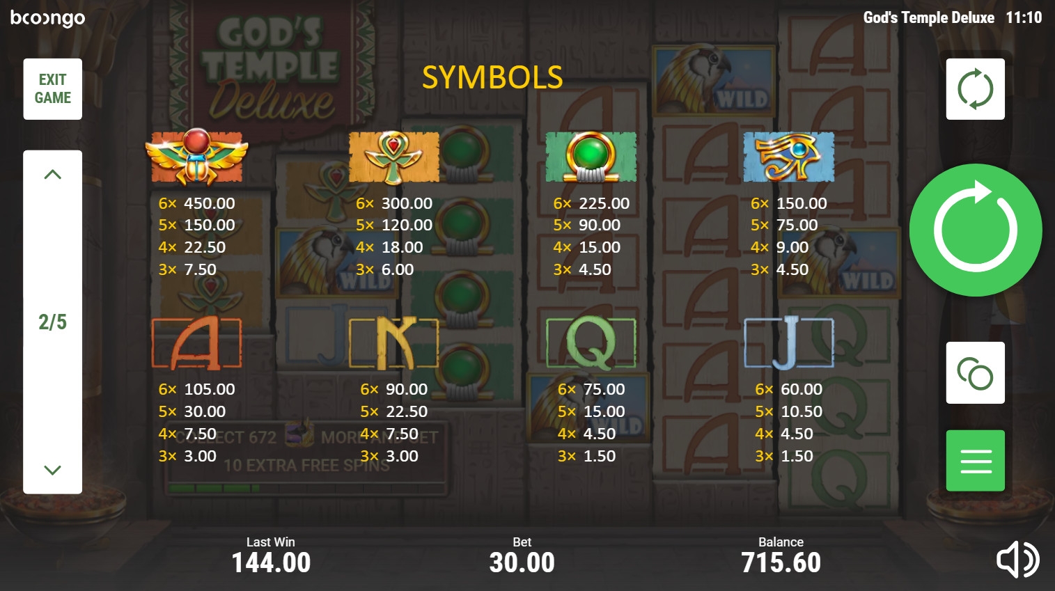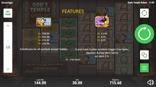 В God’s Temple Deluxe отсутствует накапливающийся джекпот Booongo.
