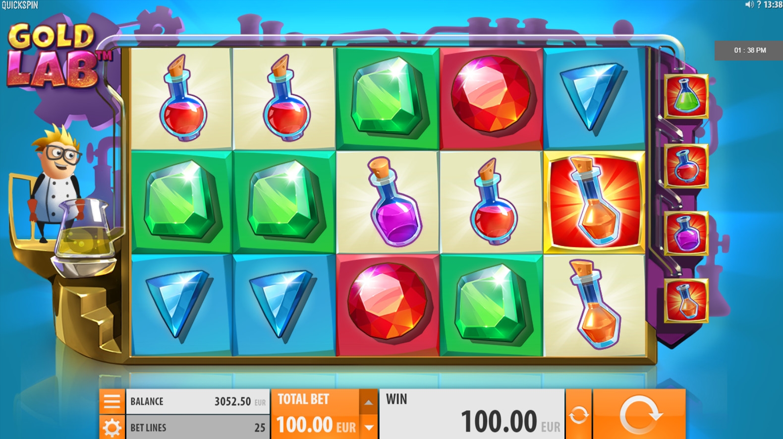 Испытать Gold Lab в демо-версии можно прямо на Casinoz. Рекомендуем посмотреть наш видео-обзор автомата, в котором демонстрируются бонусные функции.