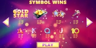 В таблице выплат содержится базовая информация о выплатах и правилах. Настраивать можно основные параметры звука и экрана. Разработчик предлагает играть на слоте Gold Star в браузере.