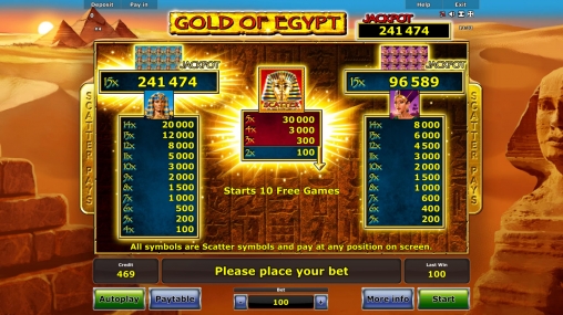 Ищите Gold of Egypt для игры на деньги в интернет-казино на лицензионной платформе Novomatic. Большинство из них дают возможность тестировать слоты бесплатно.