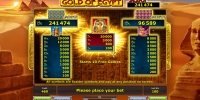 Выплаты в таблице слота Gold of Egypt опубликованы по текущей ставке.