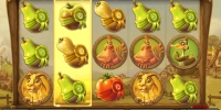 На экране видео-слота появляются веселые свиньи, куры, утки, козы и коровы, а также очаровательная девушка с лопатой и различные овощи, украшенные круглыми эмблемами с номиналами игральных карт от десятки до туза. Все они идут полосами и могут занимать целую колонку.
