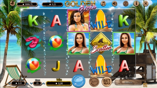 Golden Girls – игровой аппарат с пятью барабанами, двадцатью пятью активными полосами и пятнадцатью картинками.