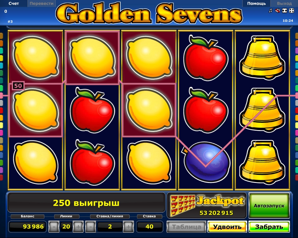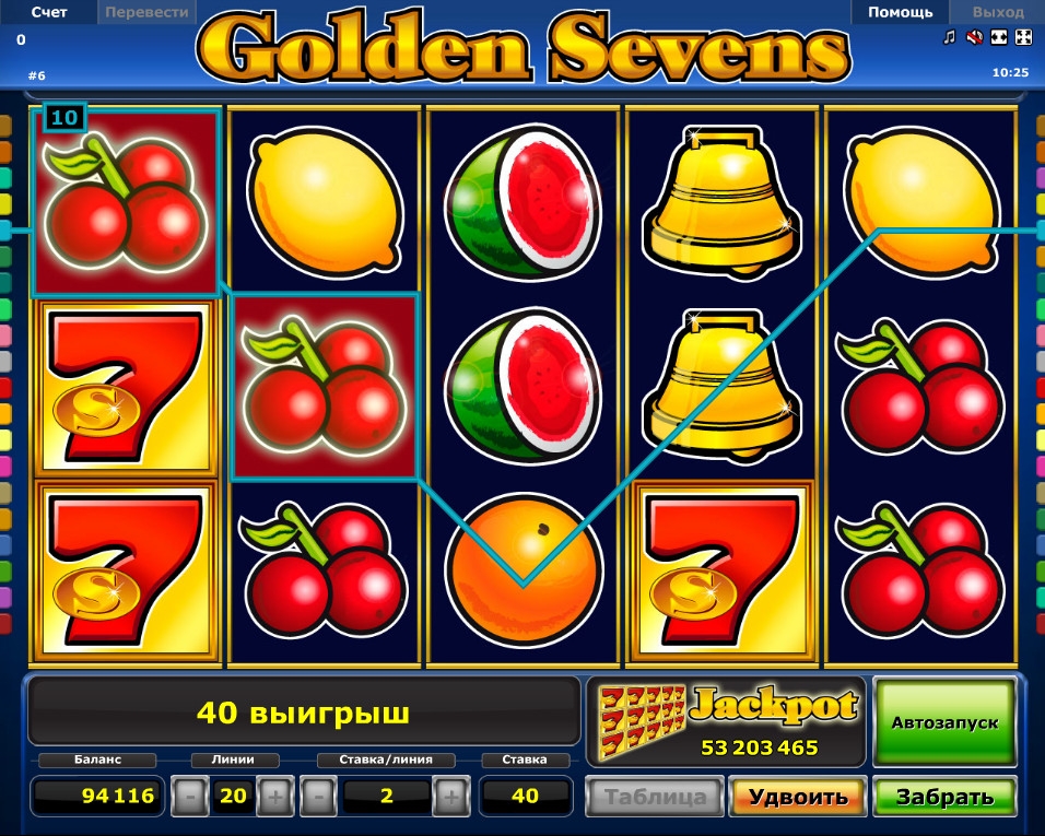 Однако она не лишена своих плюсов, в числе которых удобный, русифицированный интерфейс, а также розыгрыш накопительного джек-пота, который можно получить по любой ставке. Подробнее о Golden Sevens читайте в нашем обзоре далее.