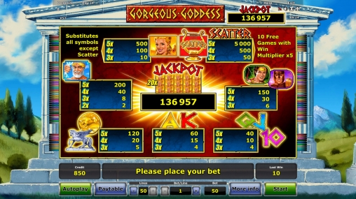Испытать Gorgeous Goddess бесплатно или запустить игровой автомат на деньги можно в интернет-казино с лицензионным программным обеспечением «Новоматик».