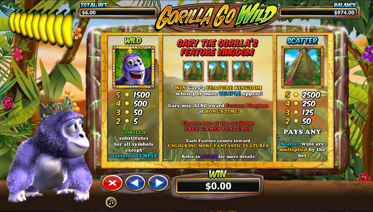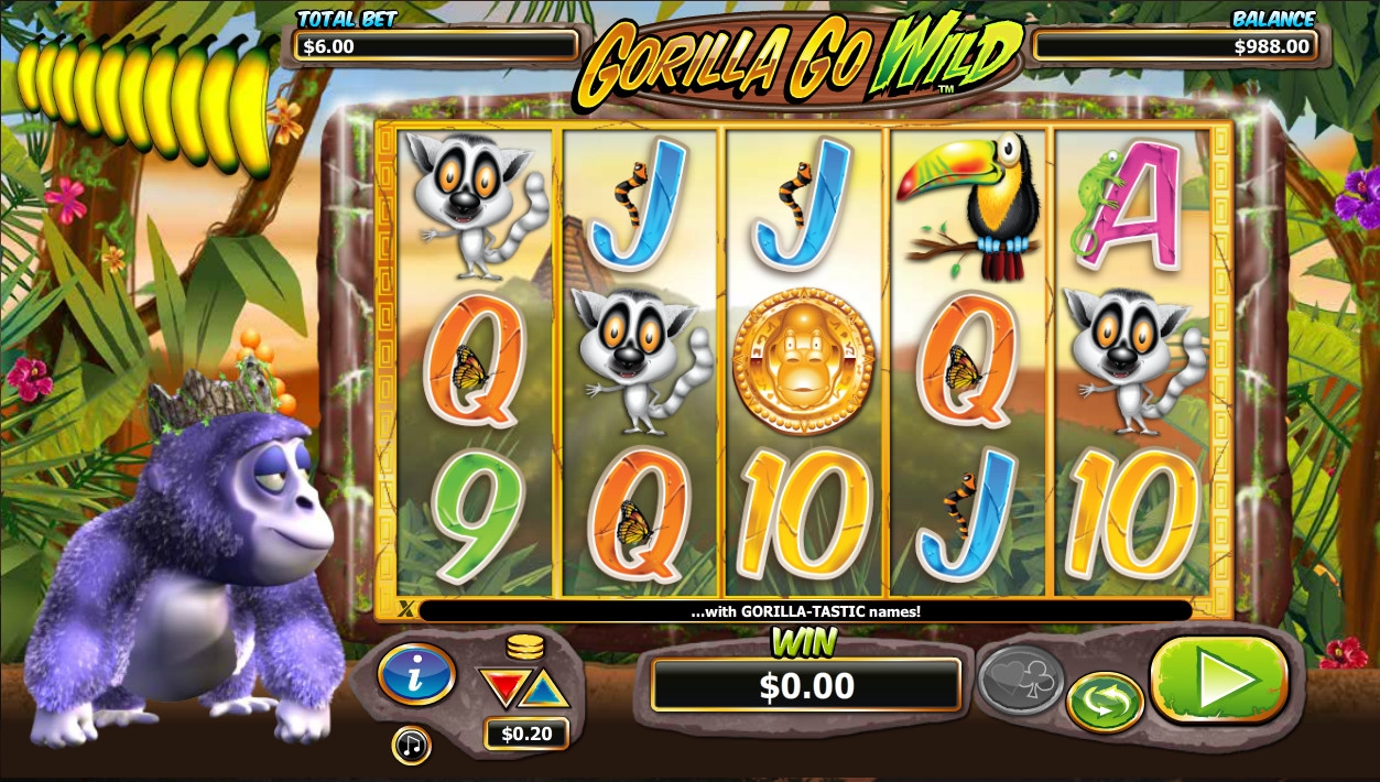 В новом игровом автомате от NextGen Gaming вы познакомитесь с очаровательной гориллой по имени Гэри, который, по всей видимости, считает себя верховным правителем южноамериканских джунглей. Иначе как объяснить корону на его голове. Gorilla Go Wild представляет собой классный видео-слот, созданный с элементами трехмерной графики. Он понравится всем любителям качественных онлайн-игр данного жанра. Наша статья от обозревателей Casinoz расскажет вам обо всех достоинствах и недостатках модели.