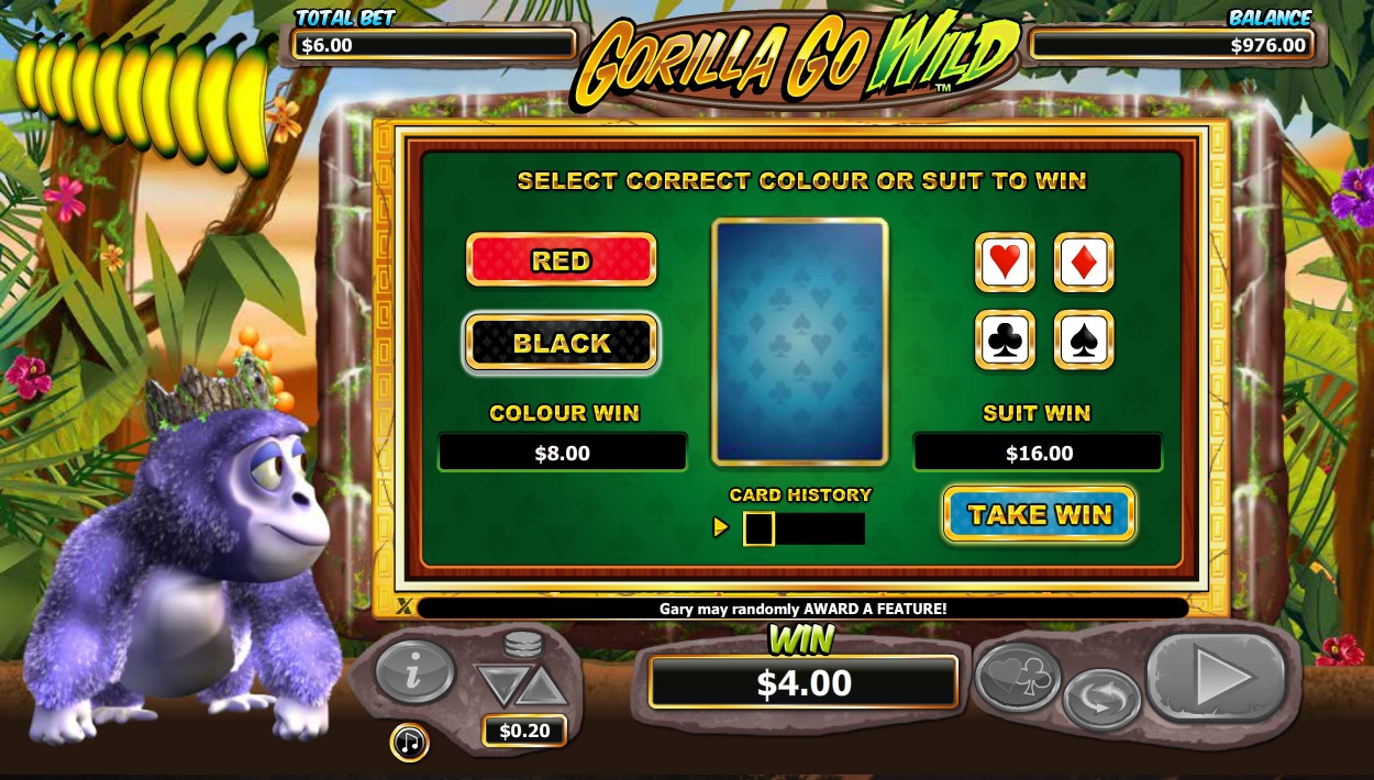 В видео-слоте есть несколько призовых функций: Gary the Gorilla, Gary Goes Bananas, Gary Bonus Time.