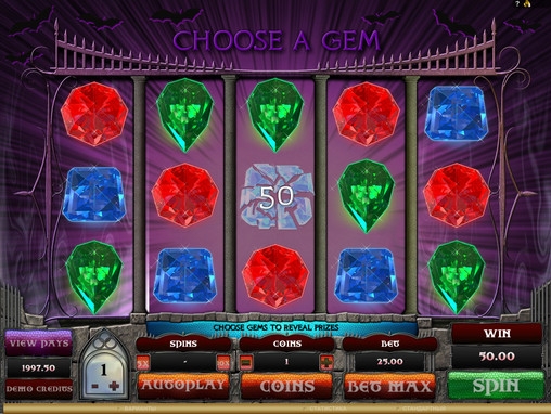 В бонусном раунде игрового автомата Gothic вместо символов на экране появятся драгоценные камни. Вам нужно будет выбирать их в произвольном порядке. Камни скрывают в себе выплаты разных размеров. Вы будете кликать по ним до тех пор, пока вам не попадется слово Collect. После этого раунд закончится с сохранением всех заработанных призовых выплат.