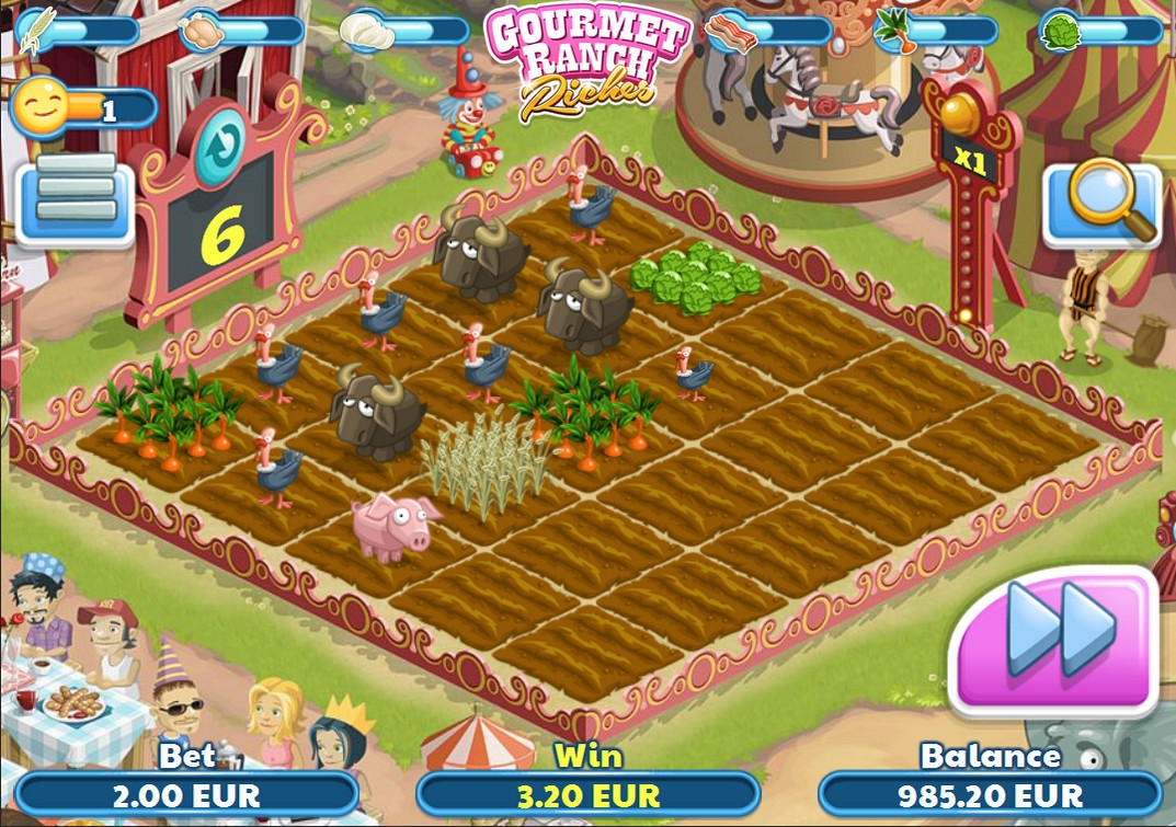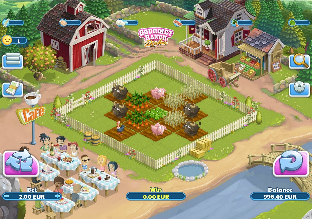 Скачивать игру Gourmet Ranch Riches не придется. Просто запускайте новинку на сайте казино.